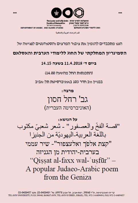 > "قصة الفخّ والعصفور" - شعر شعبيّ مكتوب باللغة العربية-اليهوديّة من الجنيزا