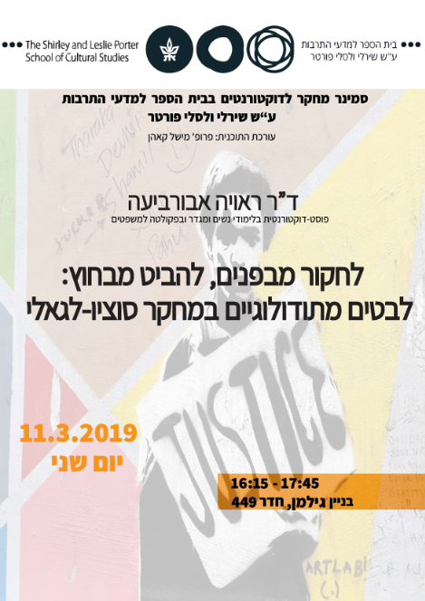 נושא: " לחקור מבפנים, להביט מבחוץ: לבטים מתודולוגיים במחקר סוציו-לגאלי"